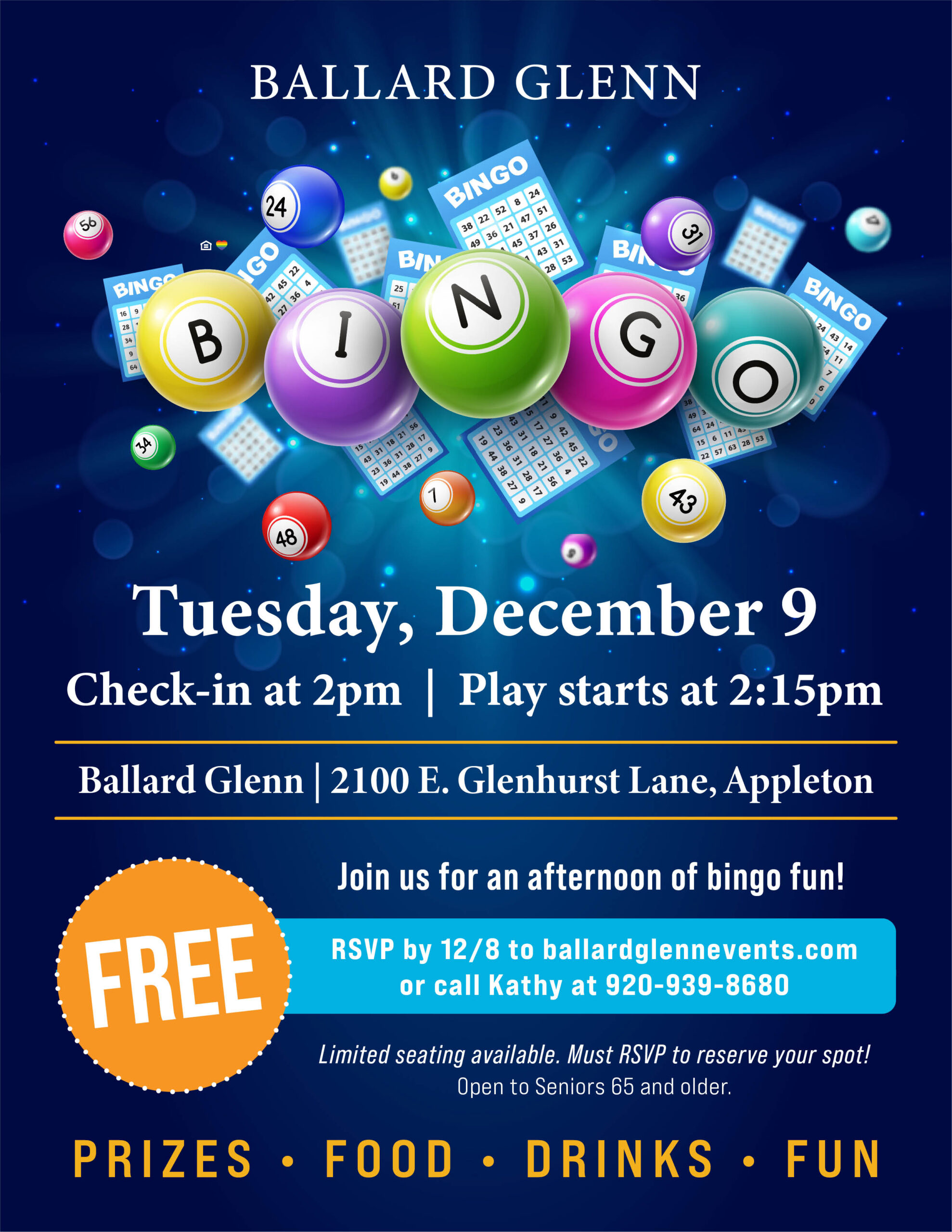 Enjoy an afternoon of friends, fun and Bingo! Open to seniors 65 and older, this monthly event features exciting prizes, light refreshments and a fun-filled time you won’t want to miss!