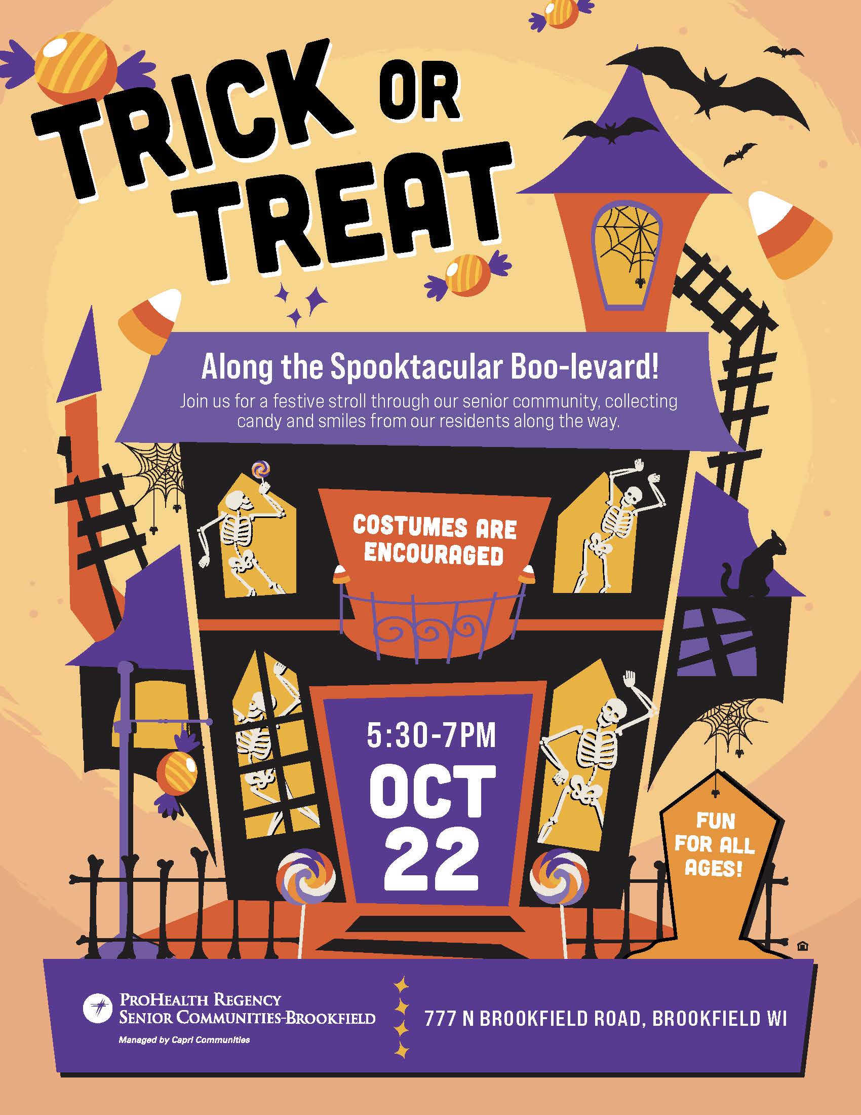 Enjoy a spooky and festive stroll, collecting candy from our residents and engage in fun themed activities along the way. Costumes are encouraged!