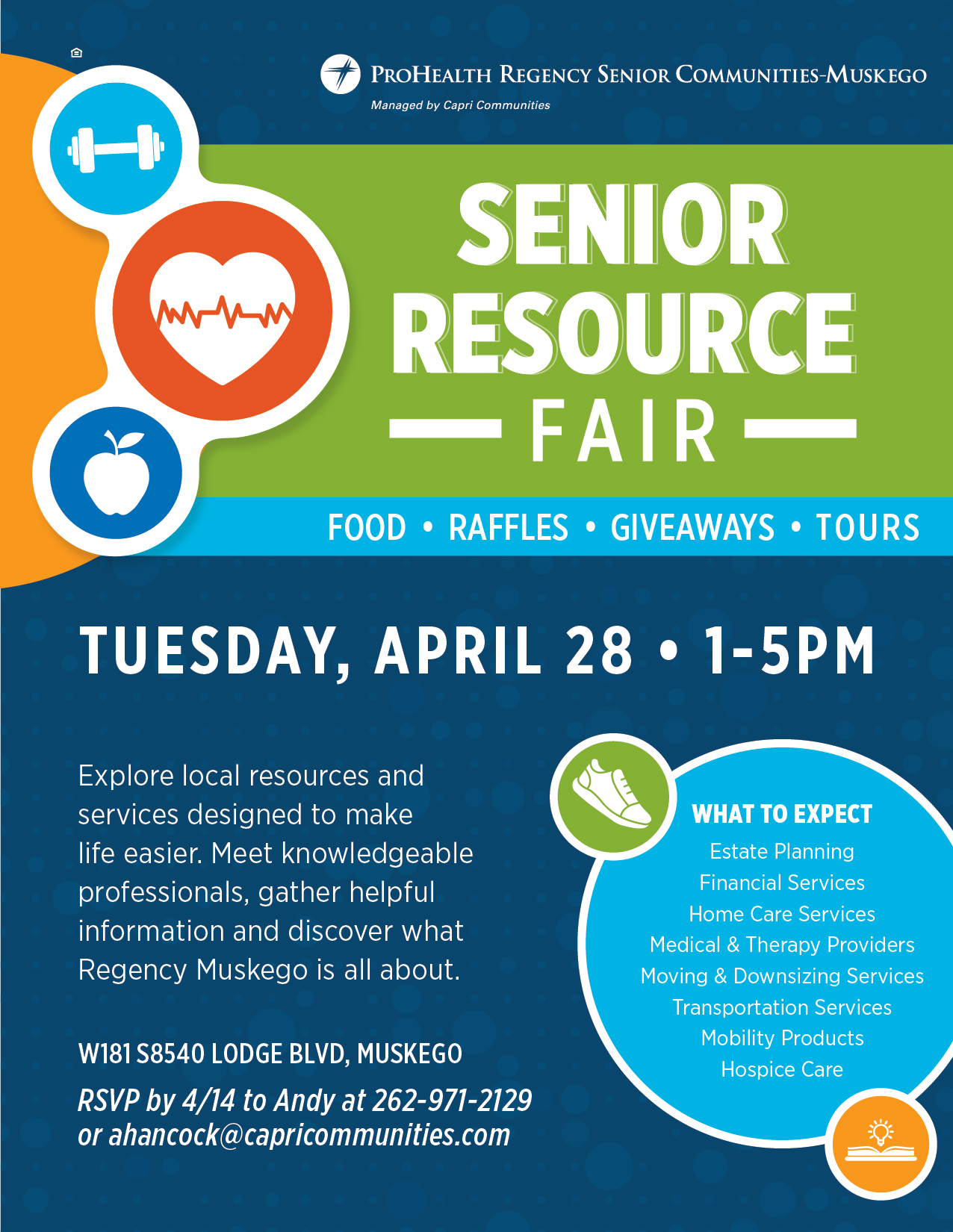 Explore local resources and services designed to make life easier. Meet knowledgeable professionals, gather helpful information and discover what Regency Muskego is all about.