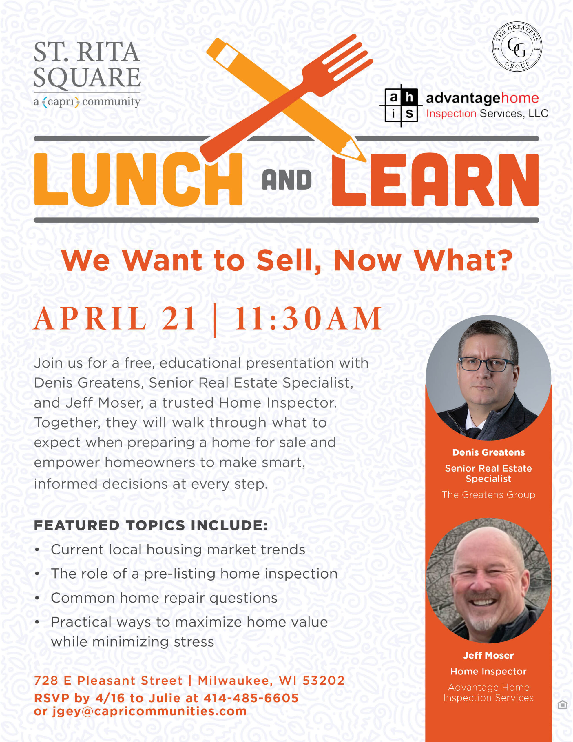 Join us for a free, educational presentation with Denis Greatens and Jeff Moser as they discuss what to expect when preparing a home for sale and empower homeowners to make smart, informed decisions.